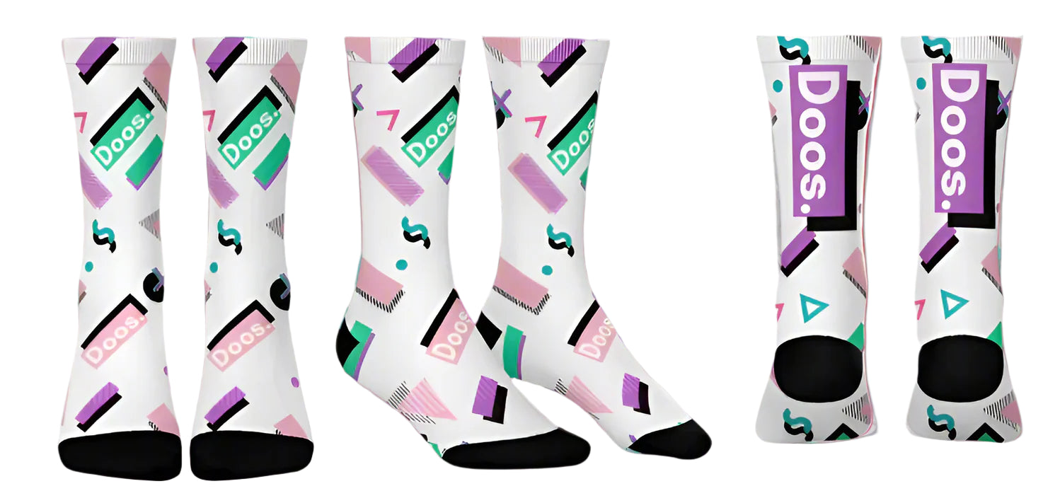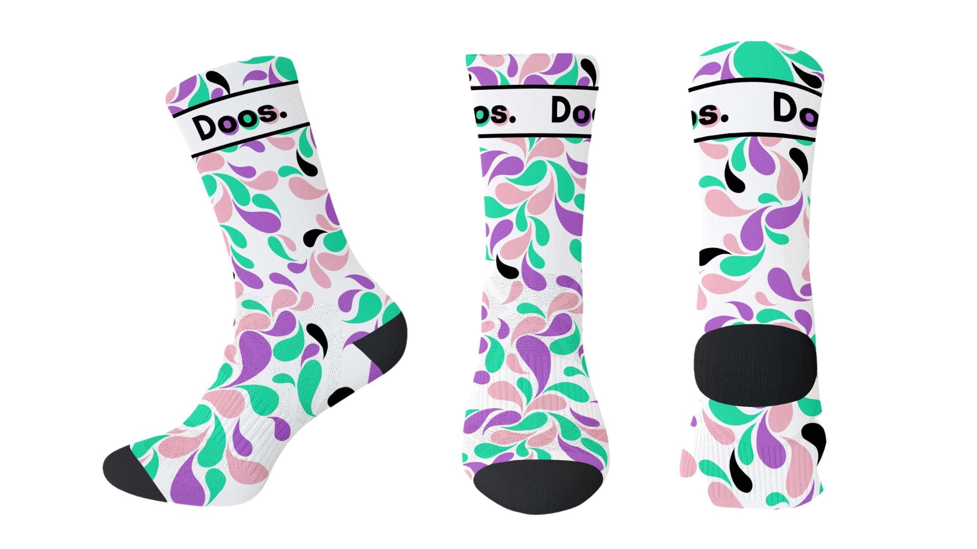 An highly attractive pair of socks, featuring unique Doos Designs.